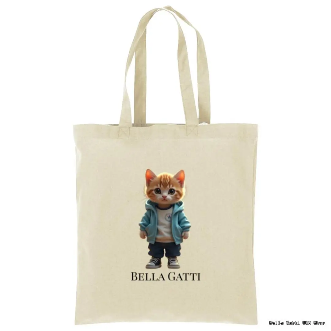 Carry your day in style with the Bella Gatti cotton tote. Crafted from 100% natural cotton, this reusable bag is soft yet sturdy for daily errands, classes, grocery runs, and weekend outings. The front features the charming Bella Gatti kitty illustration for a playful, fashion-forward touch. Long shoulder handles make it comfortable to wear and easy to grab on the go, while the flat, roomy body fits books, laptops, snacks, and other essentials without bulk.