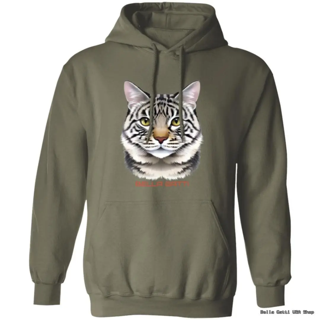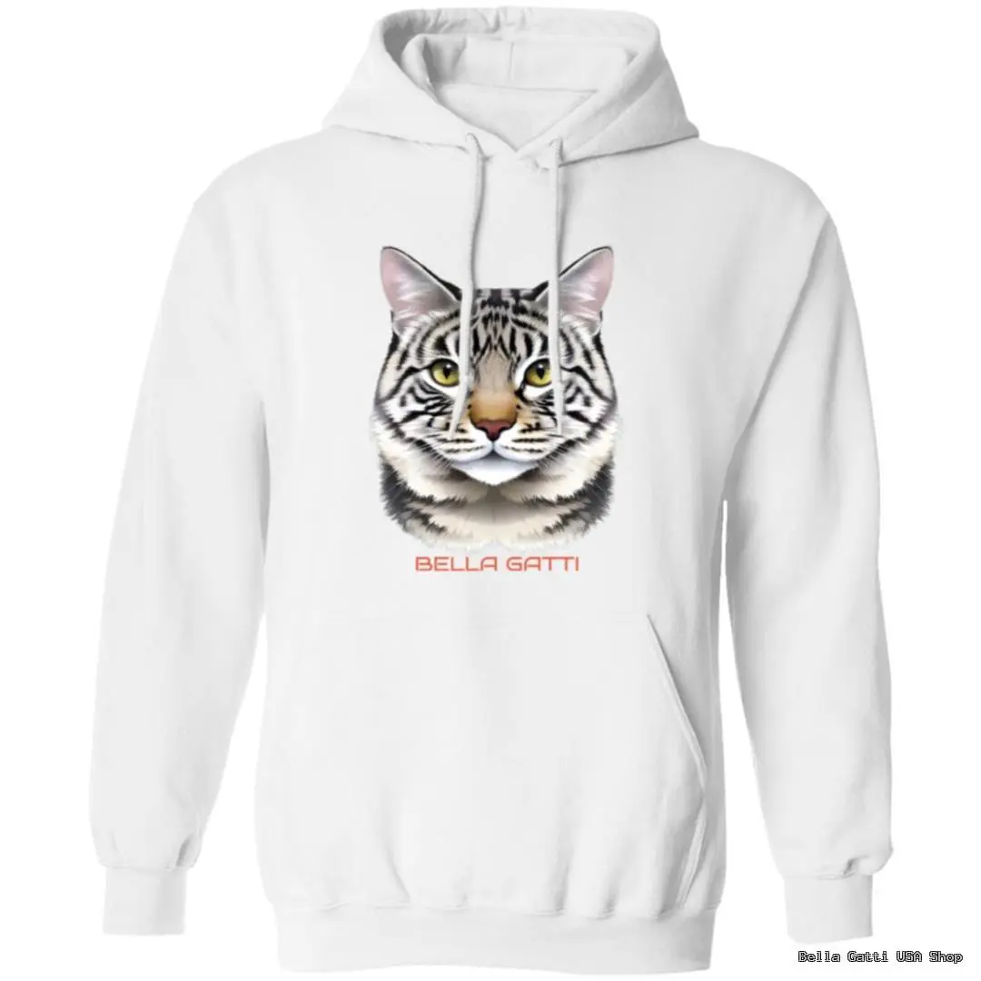 BELLA GATTI Tabby Cat Face Unisex Hoodie – Cozy Fleece Pullover.