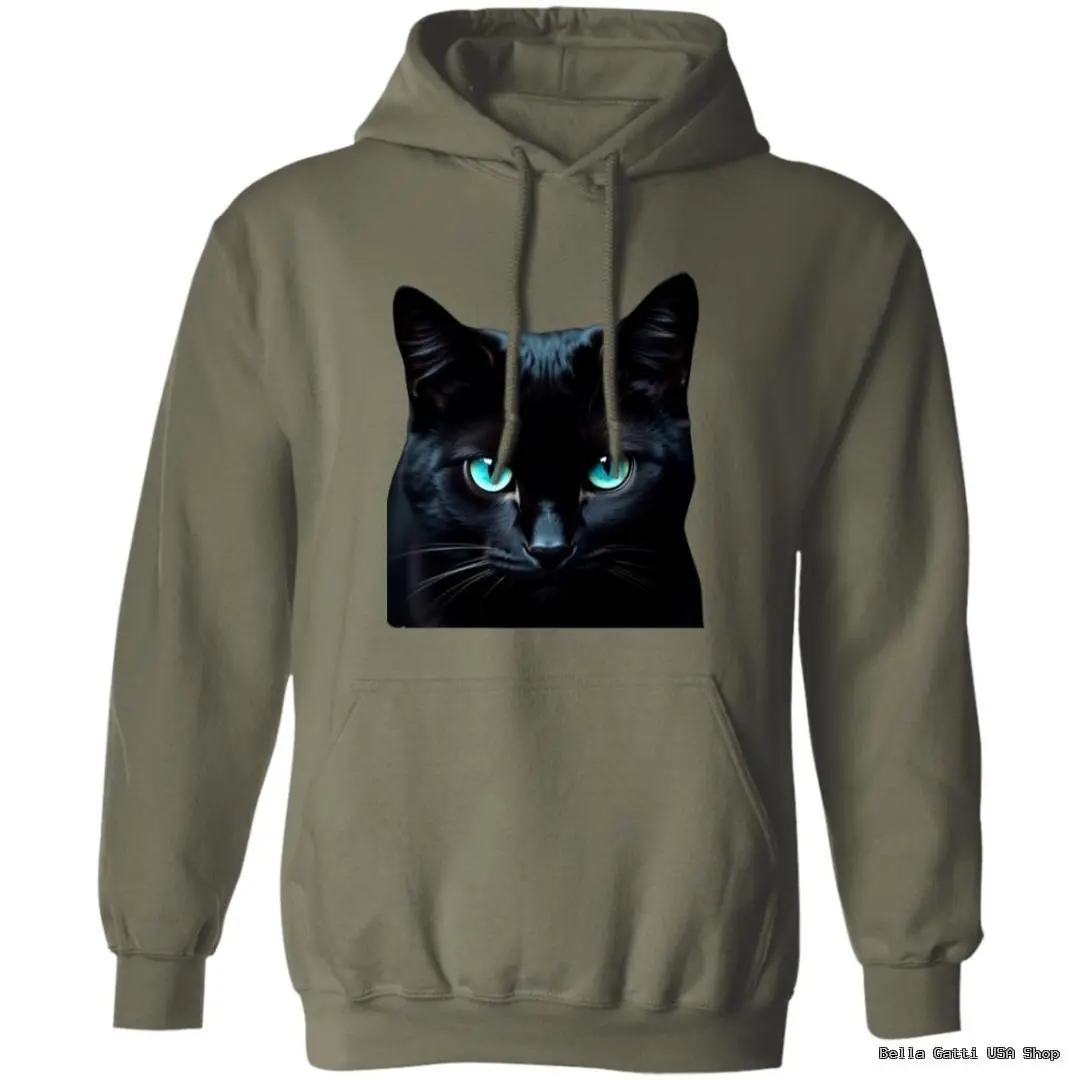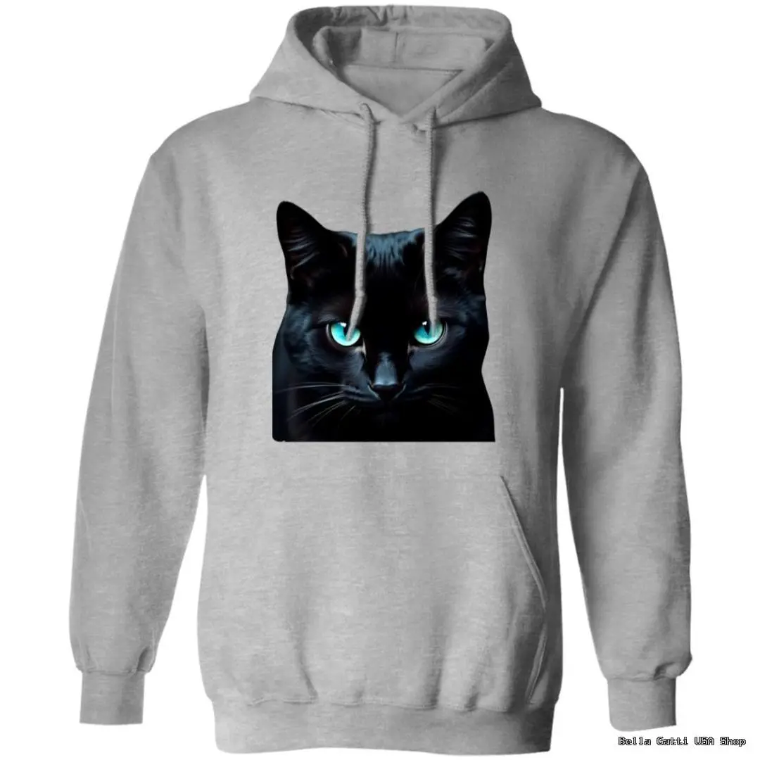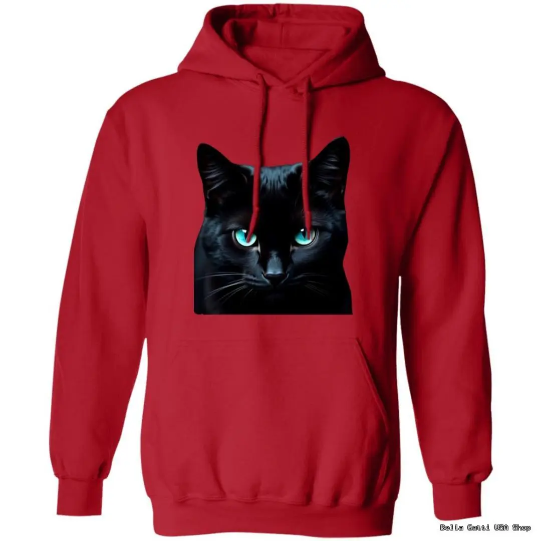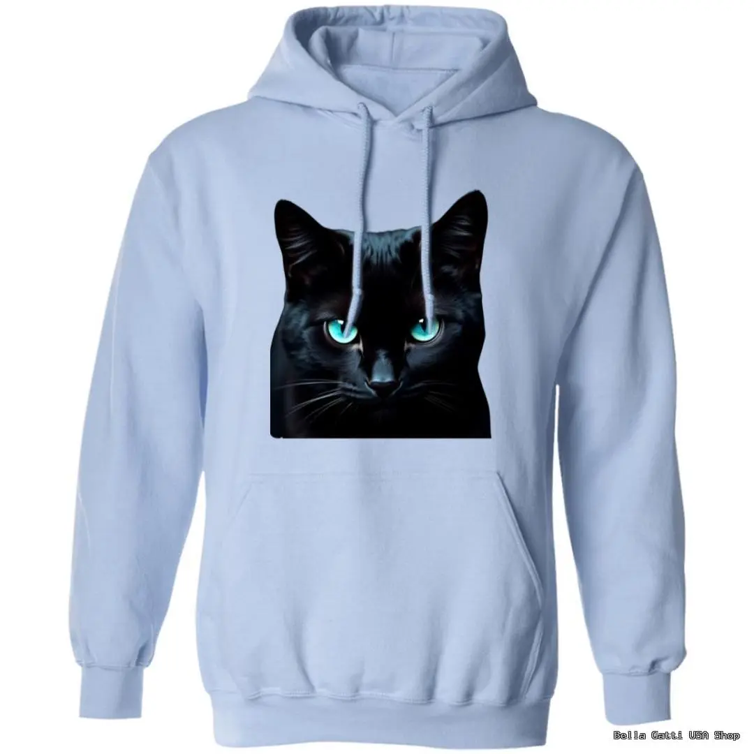 Black Cat Teal Eyes Unisex Hoodie – DIGISOFT Printing, Sizes S–2XL