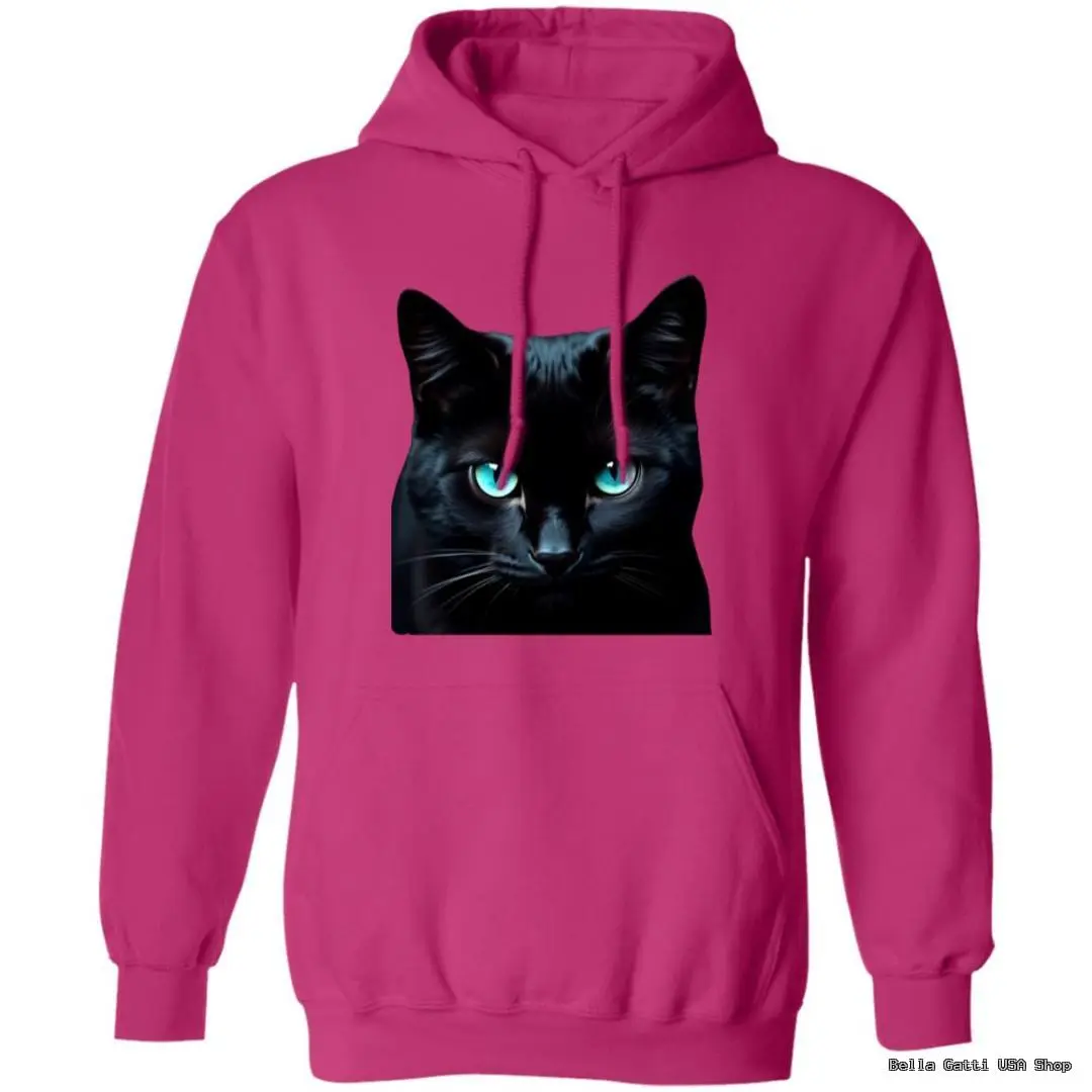 Show your feline side with this striking unisex hoodie featuring a sleek black cat with vivid teal eyes. Printed using DIGISOFT Printing for a soft hand, high-detail image, and long-lasting color that resists cracking and fading, this cozy cotton-blend fleece hoodie is perfect for everyday wear or cool nights. The classic fit includes an adjustable drawstring hood and a roomy kangaroo pocket for comfort and convenience.