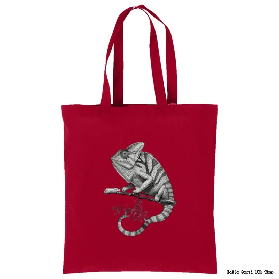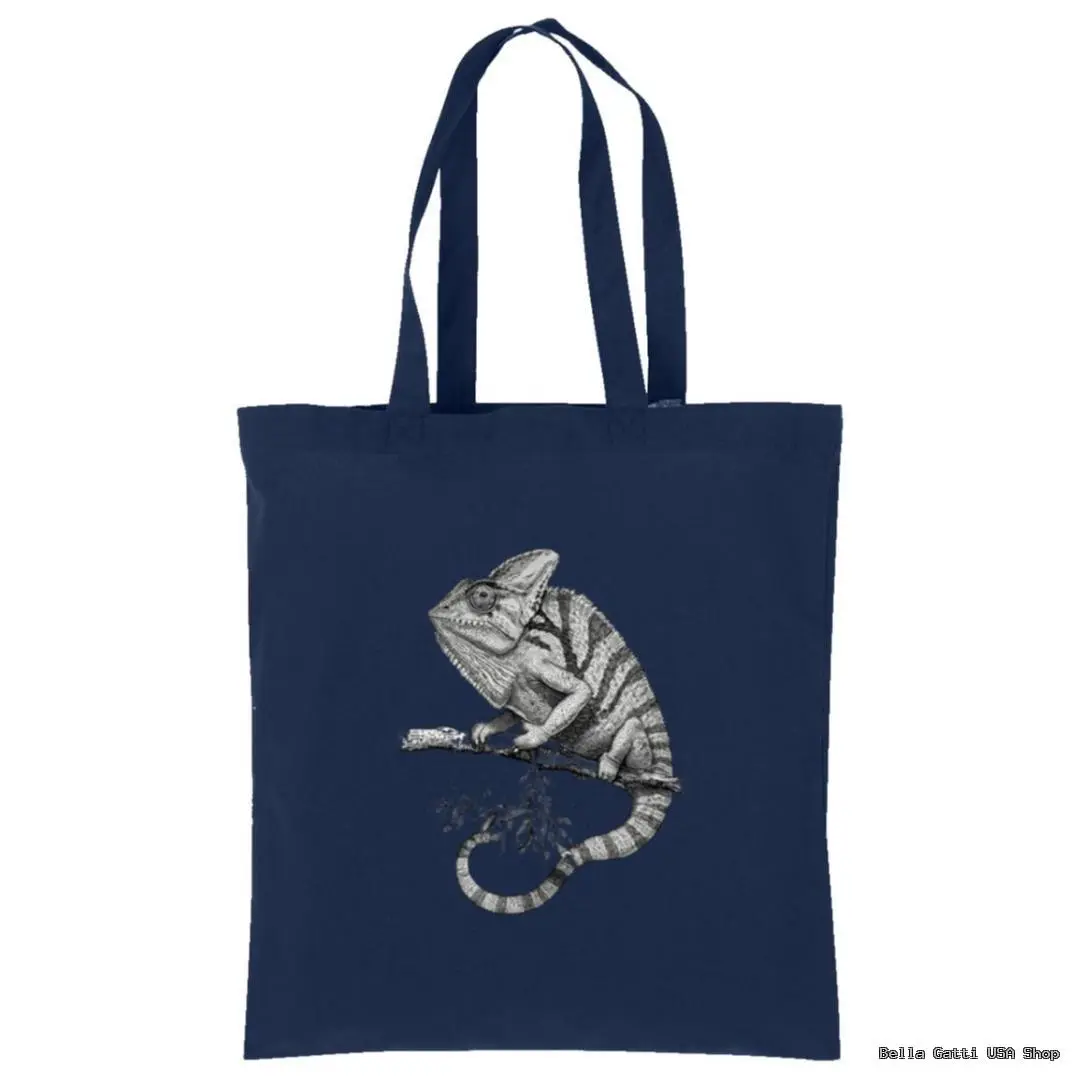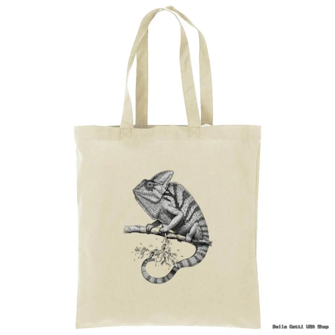 Carry your essentials in style with this 100% cotton tote featuring a detailed chameleon illustration. Durable, lightweight, and reusable-available in a selection of colors for everyday shopping, books, and errands.