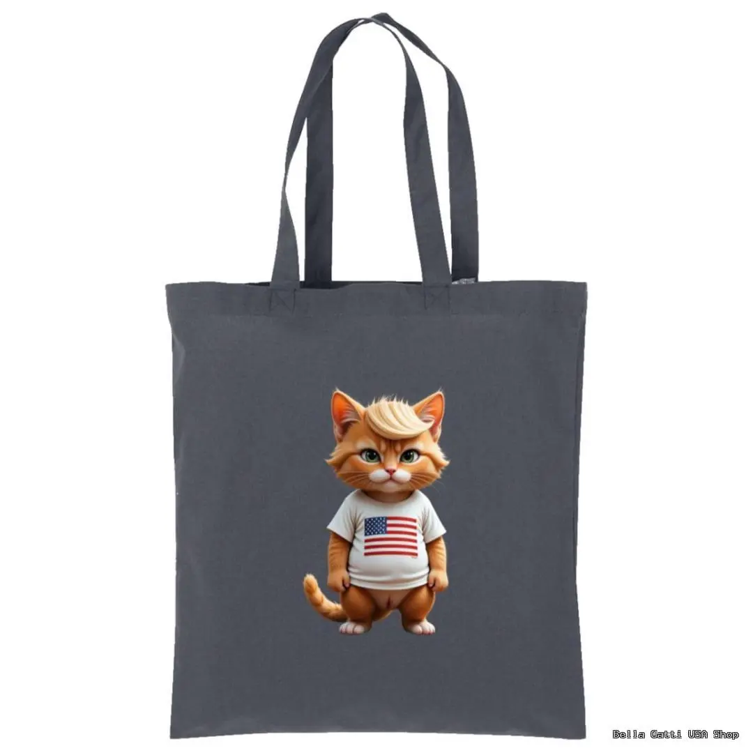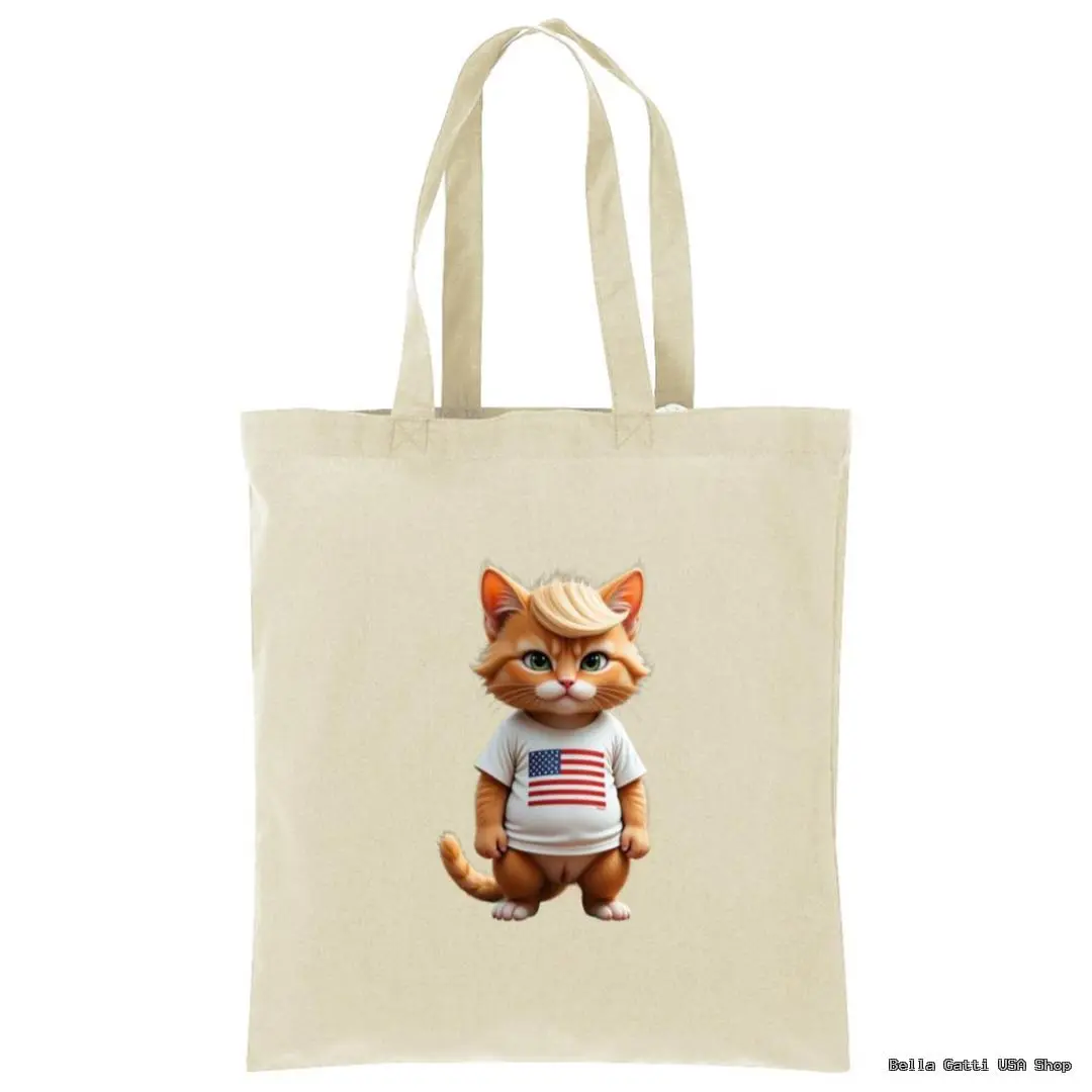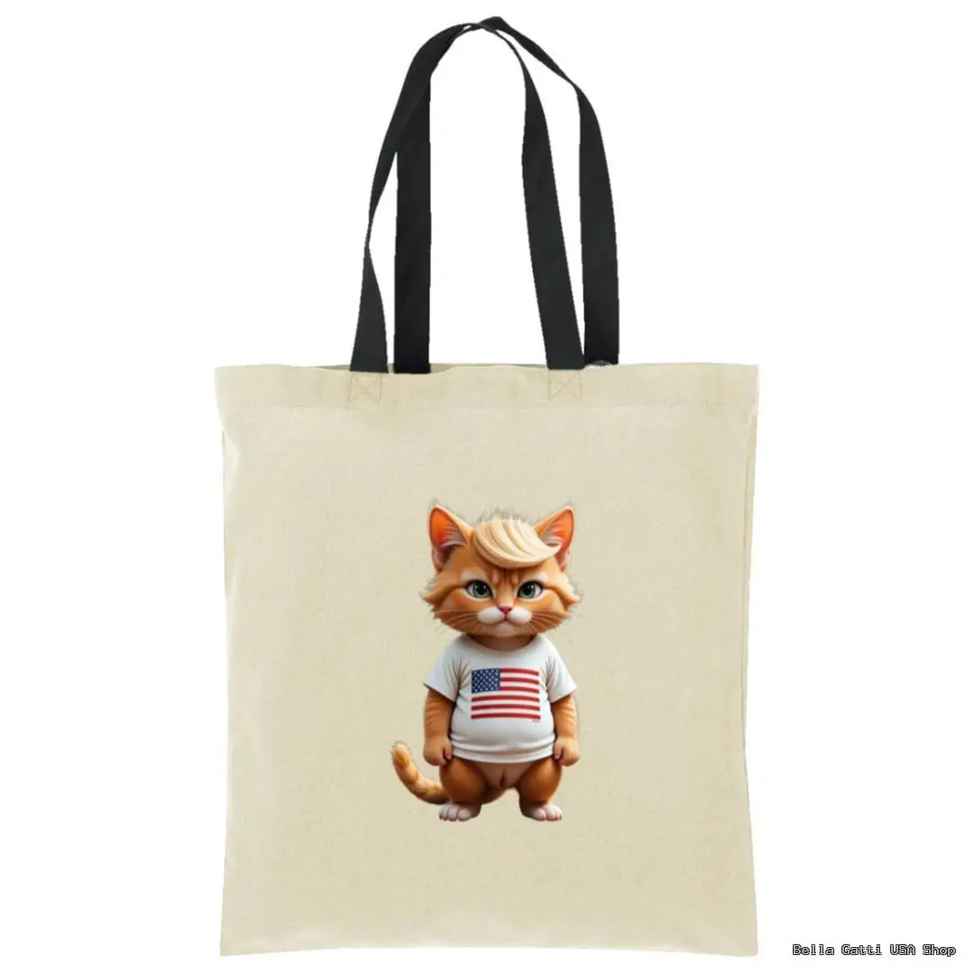 Carry your essentials with personality. This reusable tote features a charming kitty wearing a flag tee on the front, printed on soft, durable 100% cotton. Lightweight yet sturdy, it’s perfect for grocery runs, books, beach days, or everyday errands. Comfortable over-the-shoulder straps make it easy to take anywhere, and the washable fabric means it’s ready for repeat use.