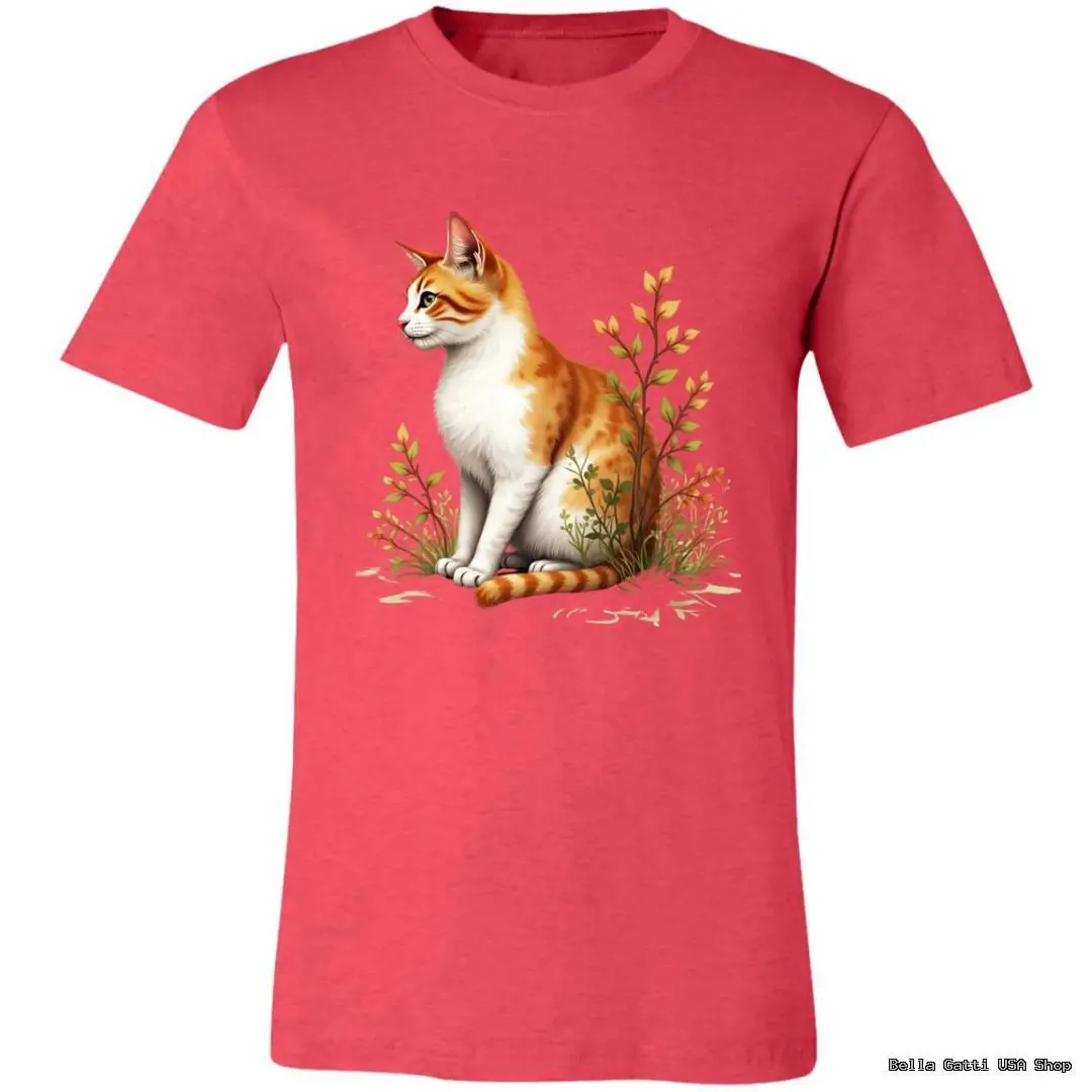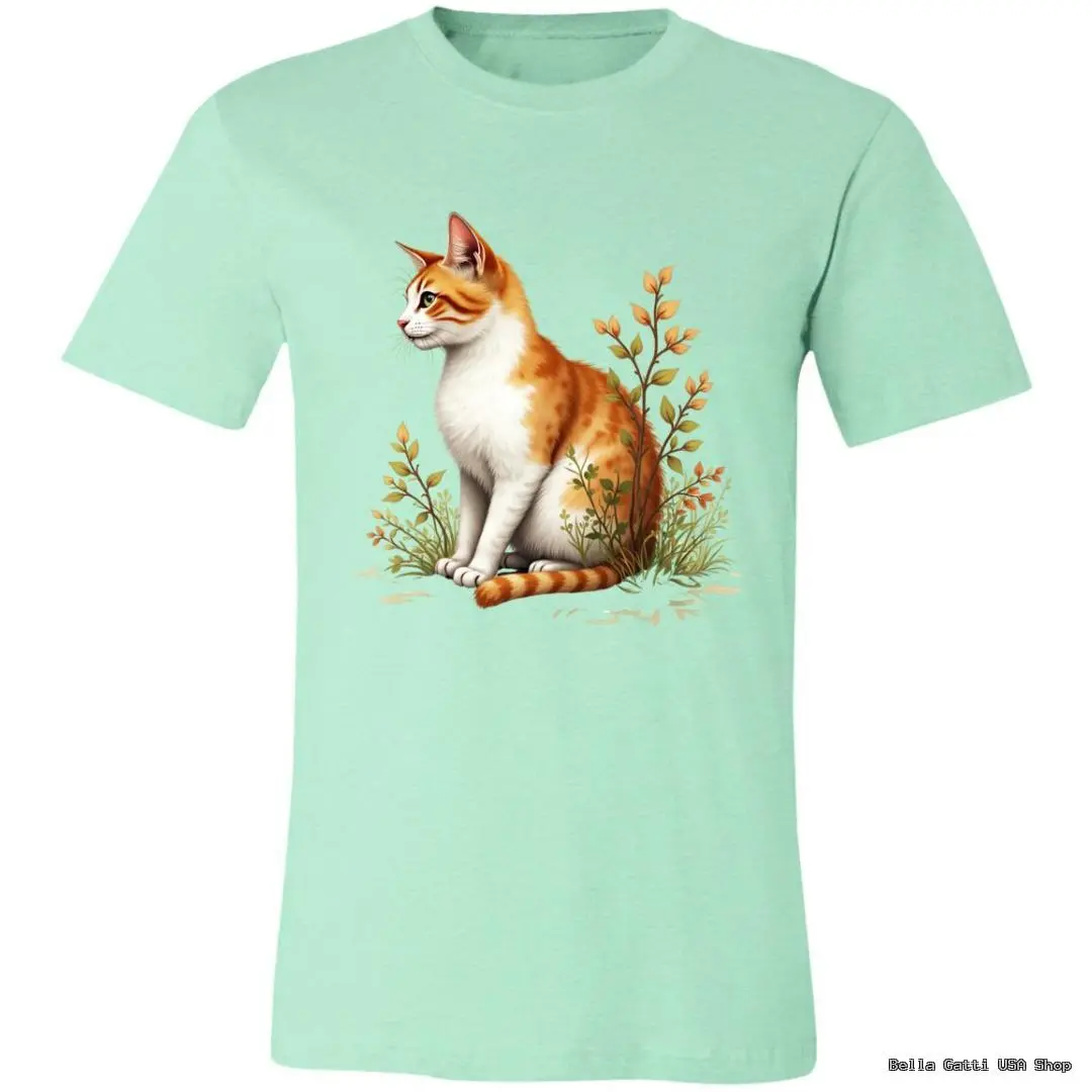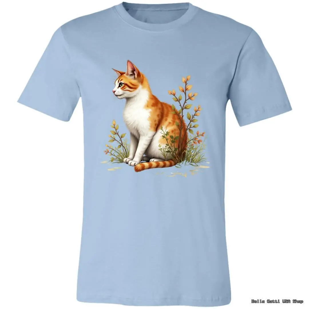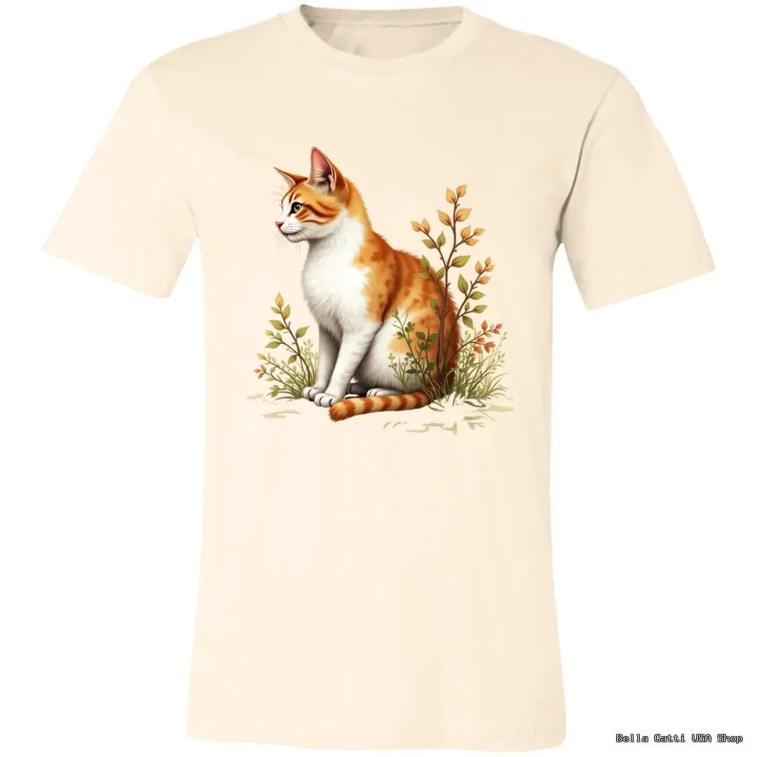 Soft, everyday tee featuring a ginger-and-white cat nestled in wildflowers. Comes in a range of colors to match your style.