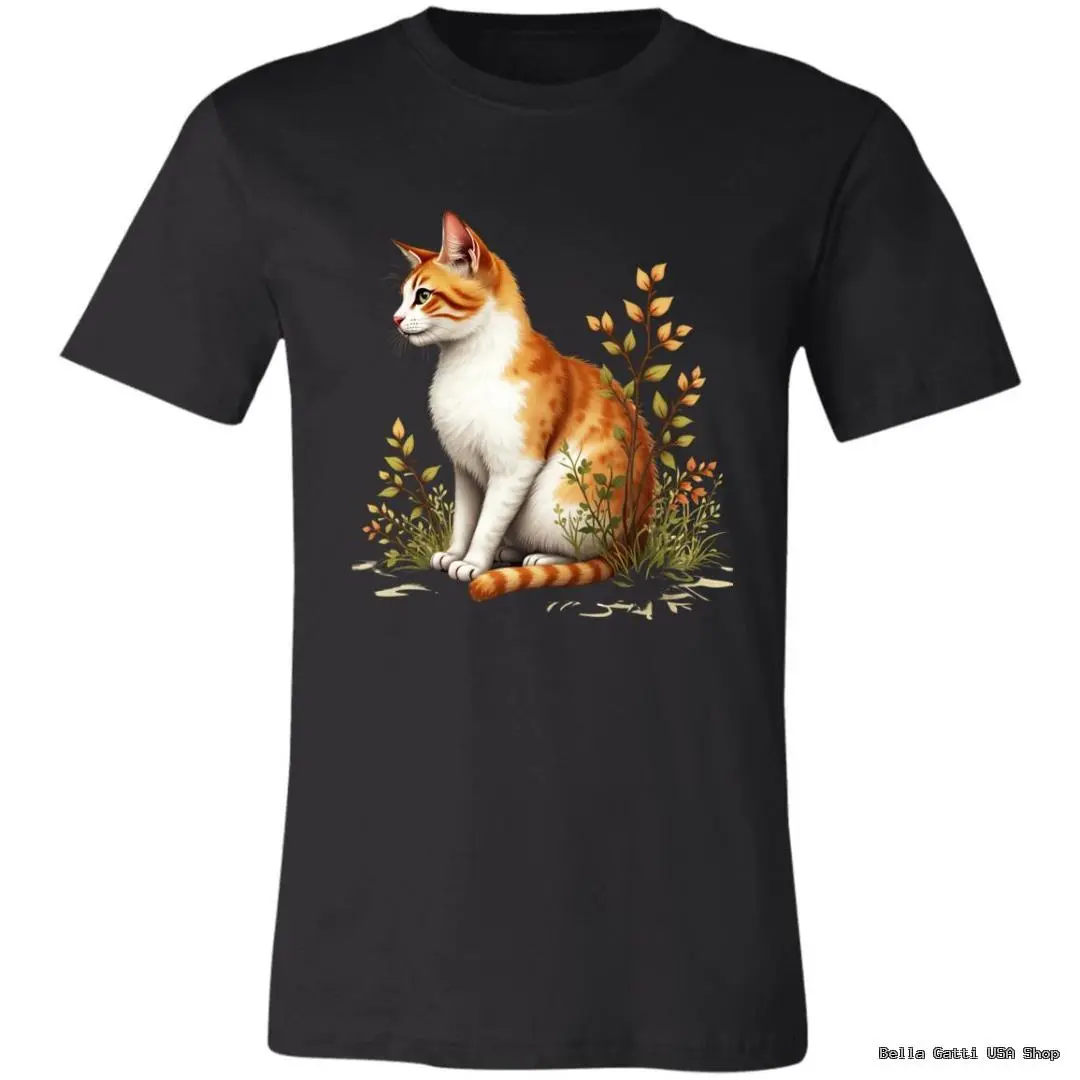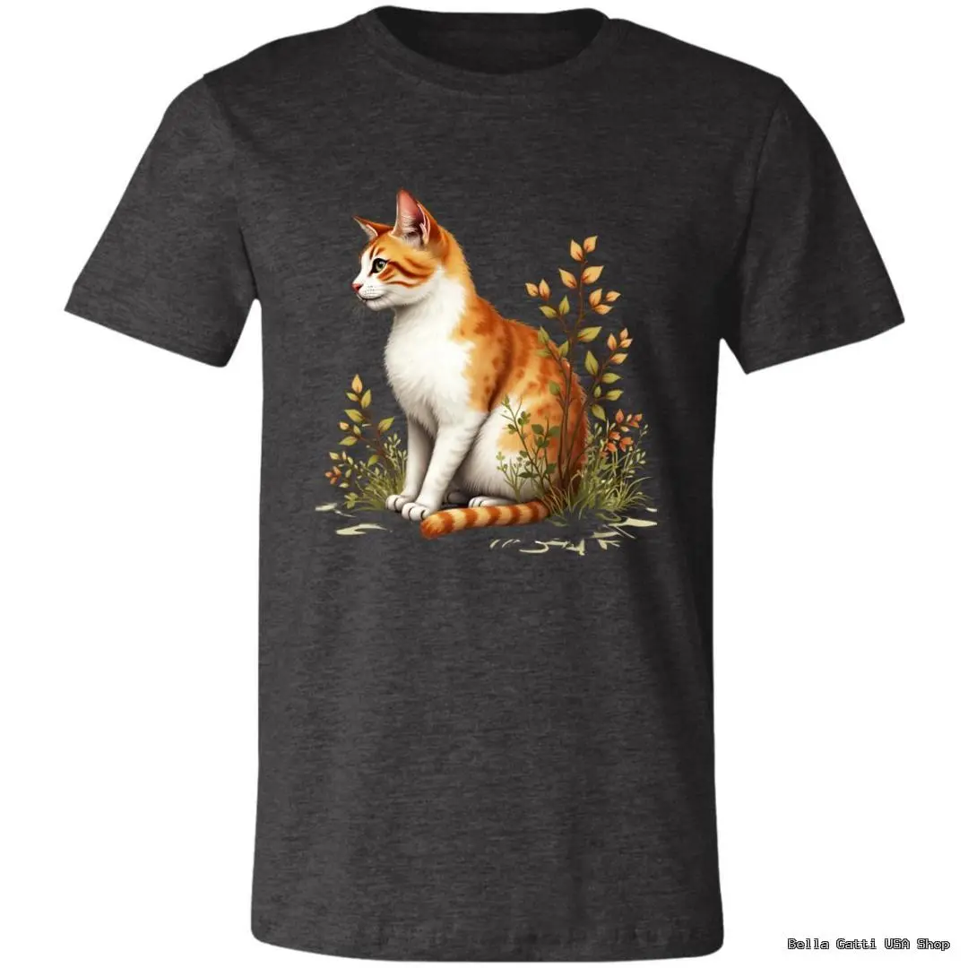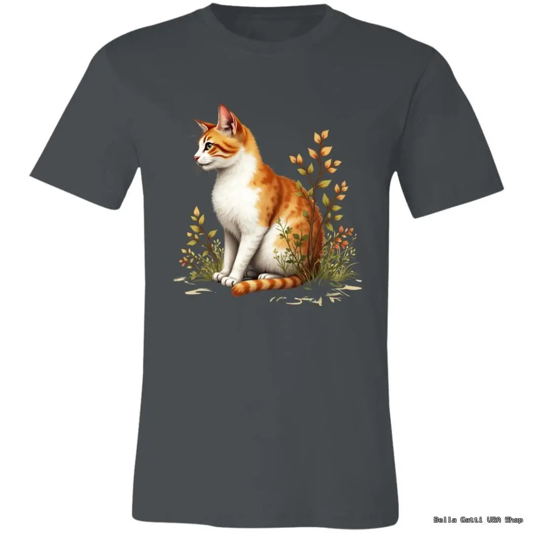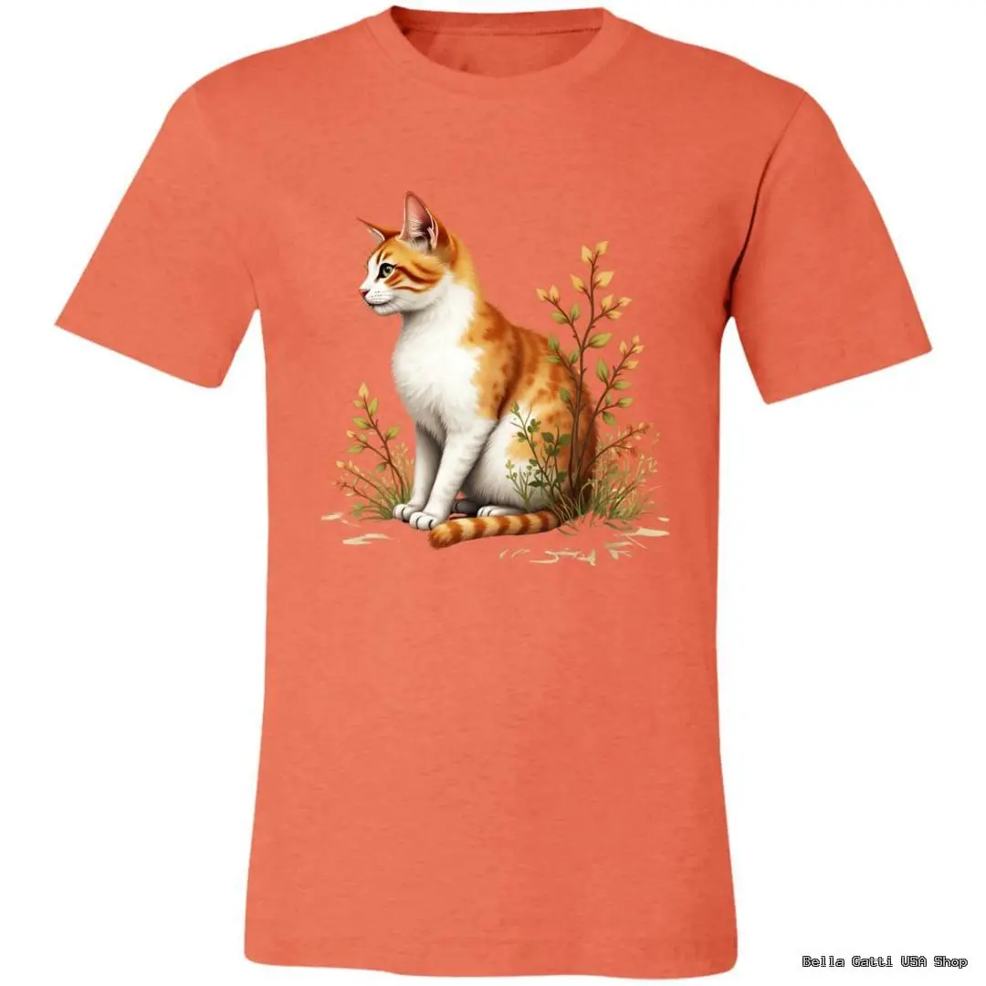 Soft, everyday tee featuring a ginger-and-white cat nestled in wildflowers. Comes in a range of colors to match your style.