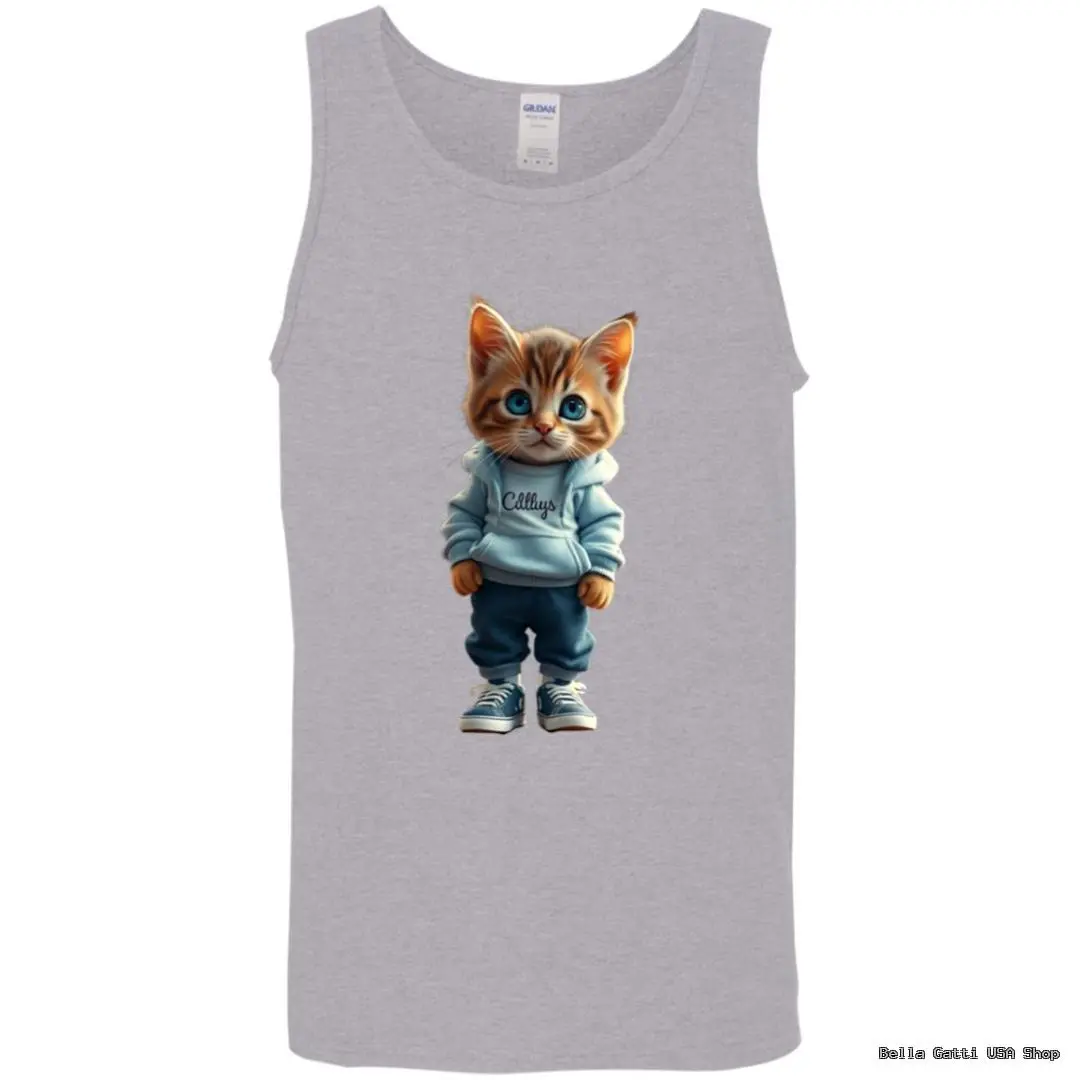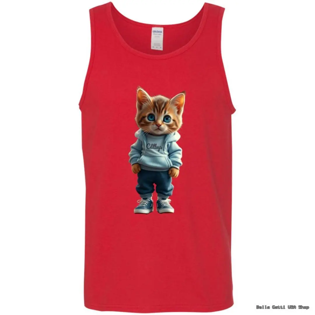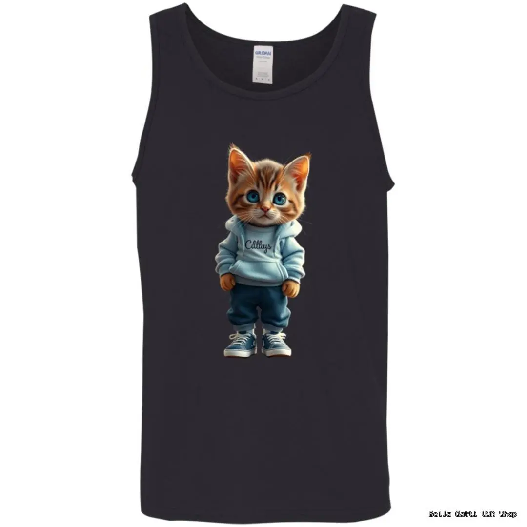 Hoodie Kitten Graphic Tank Top – DIGISOFT Printed, Unisex S–2XL, Multiple Colors
