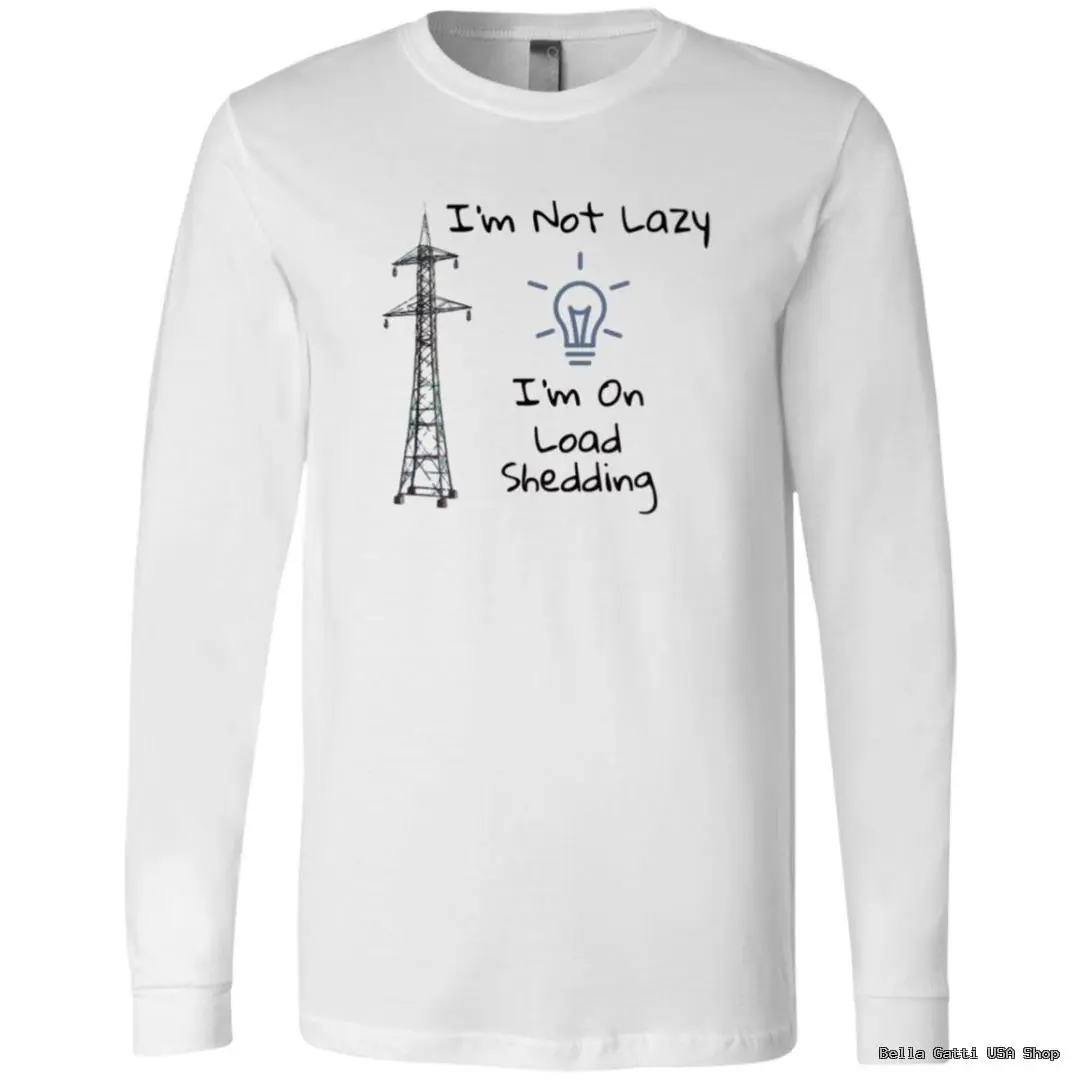 I’m Not Lazy, I’m On Load Shedding – Funny Long Sleeve T-Shirt with Light-bulb and Power Tower Graphic