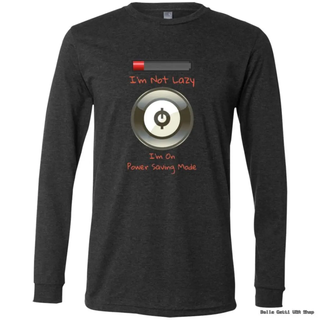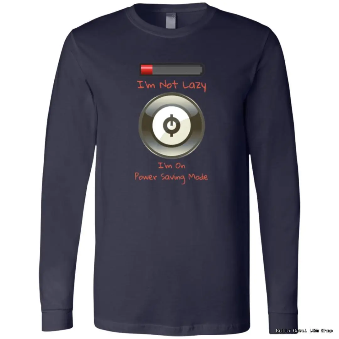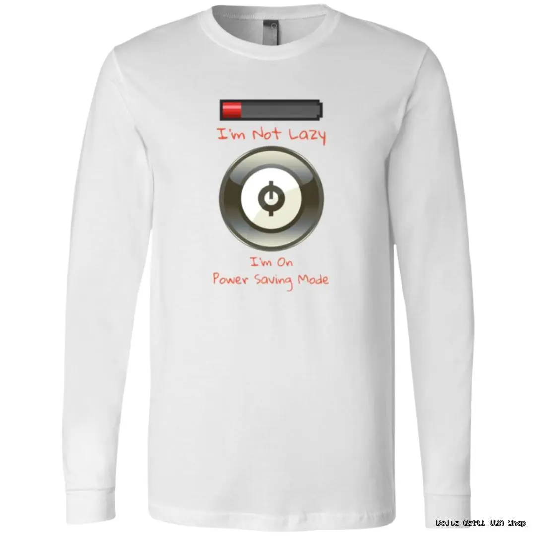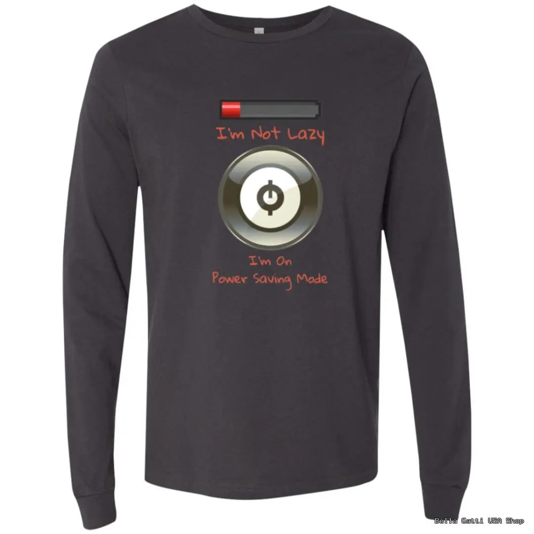 Dial down the output, not the style. This unisex long sleeve tee features a cheeky low-battery bar and power button with the caption “I’m Not Lazy—I’m On Power Saving Mode.” Printed using DigiSoft technology for ultra-vivid color and a smooth, soft-hand feel that moves with the fabric, it’s made for coders, gamers, and anyone who appreciates smart humor. The midweight cotton-blend fabric is comfortable year-round, with a classic crew neck, ribbed cuffs, and a relaxed unisex fit. Durable inks resist cracking and peeling, so the joke stays sharp wash after wash. Available in a selection of colors to match your vibe.