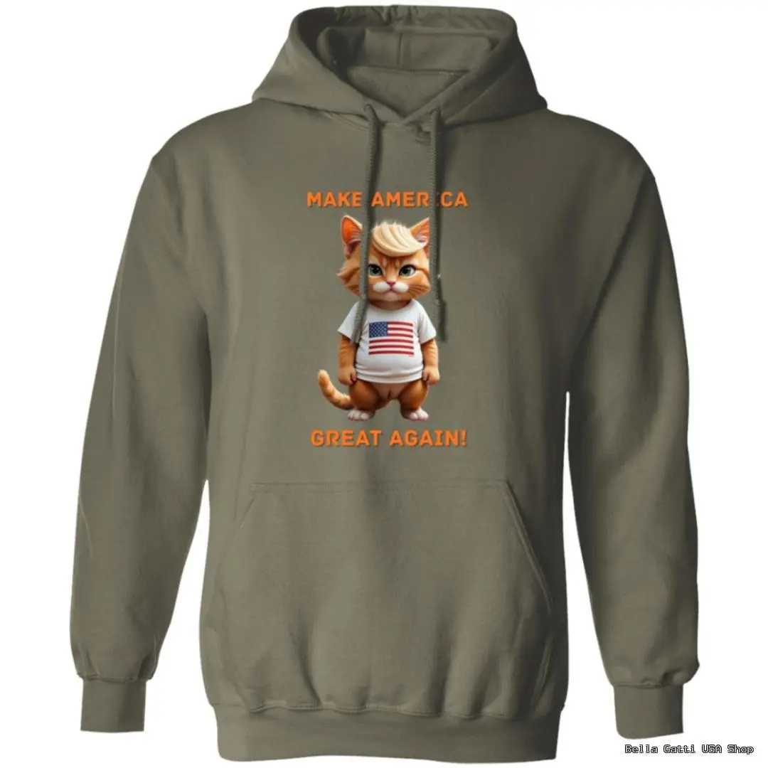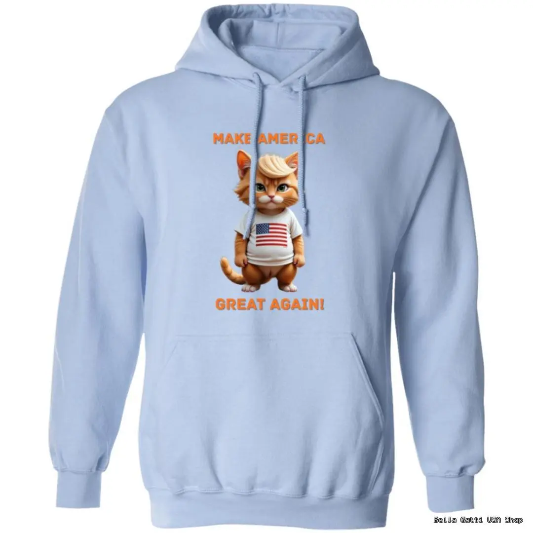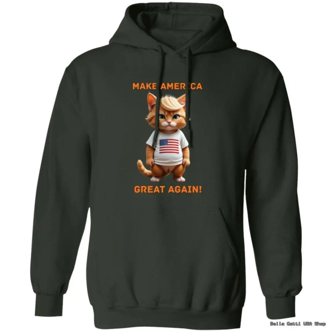 Stay cozy and make a statement in this unisex hoodie featuring a cute patriotic cat and “Make America Great Again” graphic. DIGISOFT soft-touch print. Multiple colors and sizes S–2XL