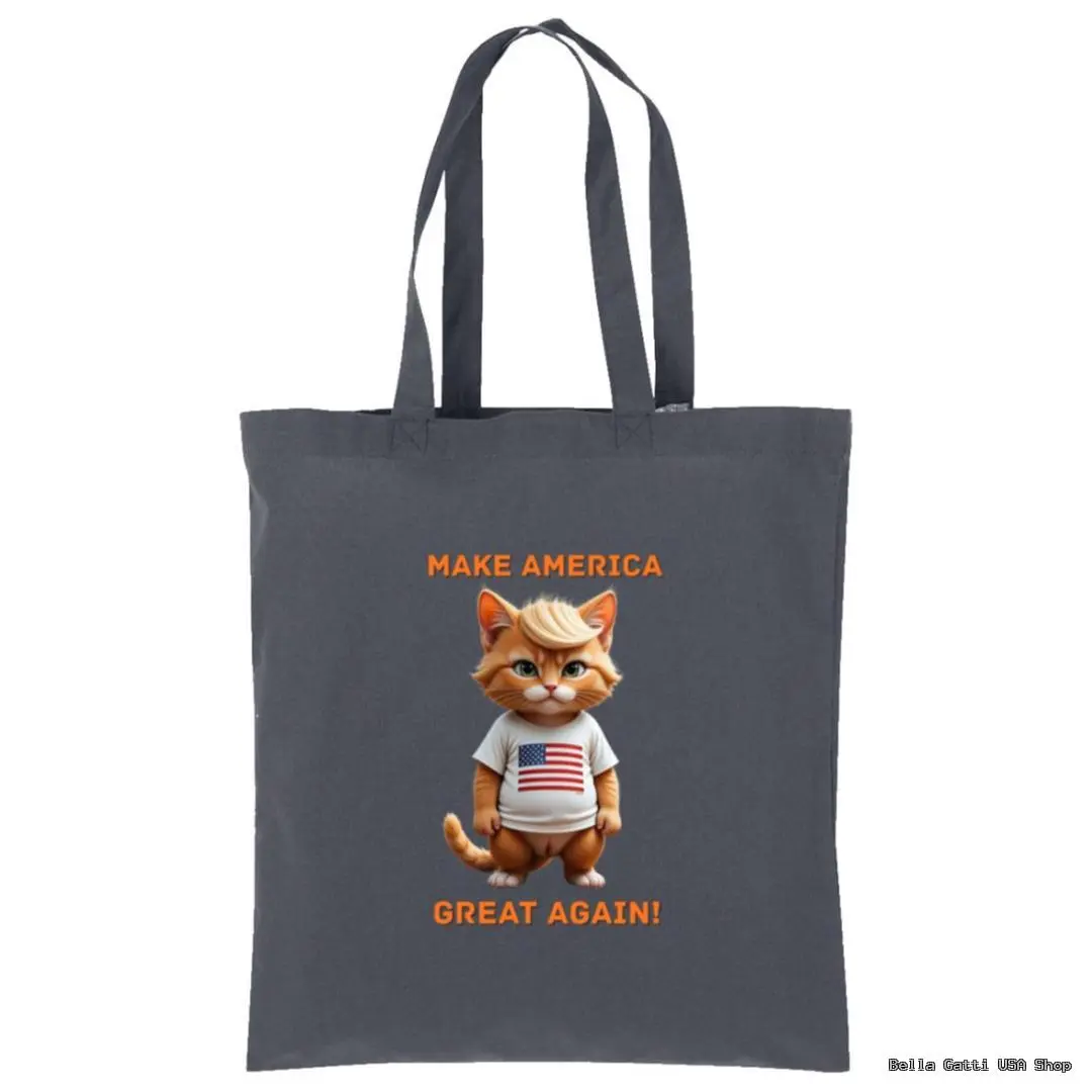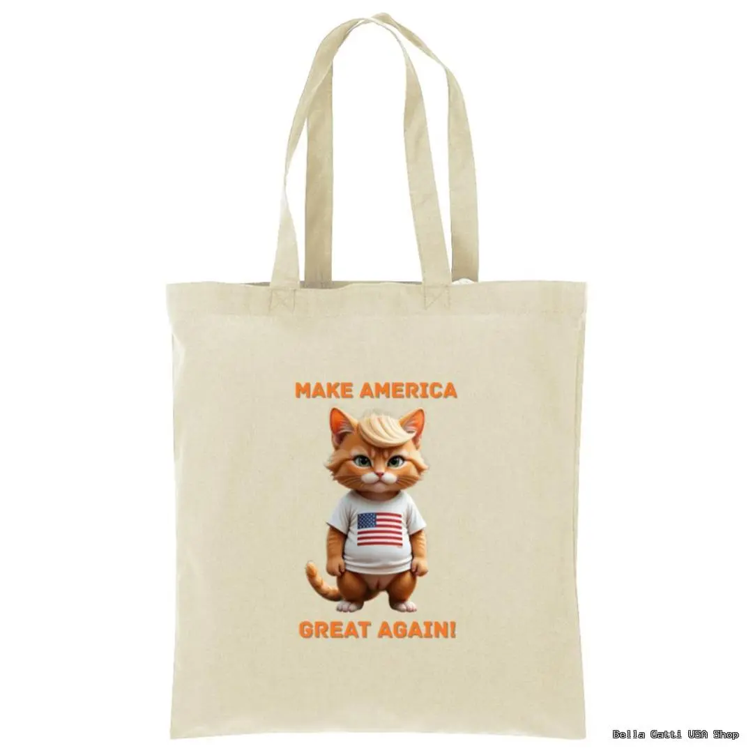 Carry your everyday essentials with a playful, patriotic twist. This reusable tote features a cute cat graphic under the phrase “Make America Great Again,” printed on a sturdy 100% cotton canvas bag. It’s lightweight, durable, and perfect for errands, books, groceries, or a day out.