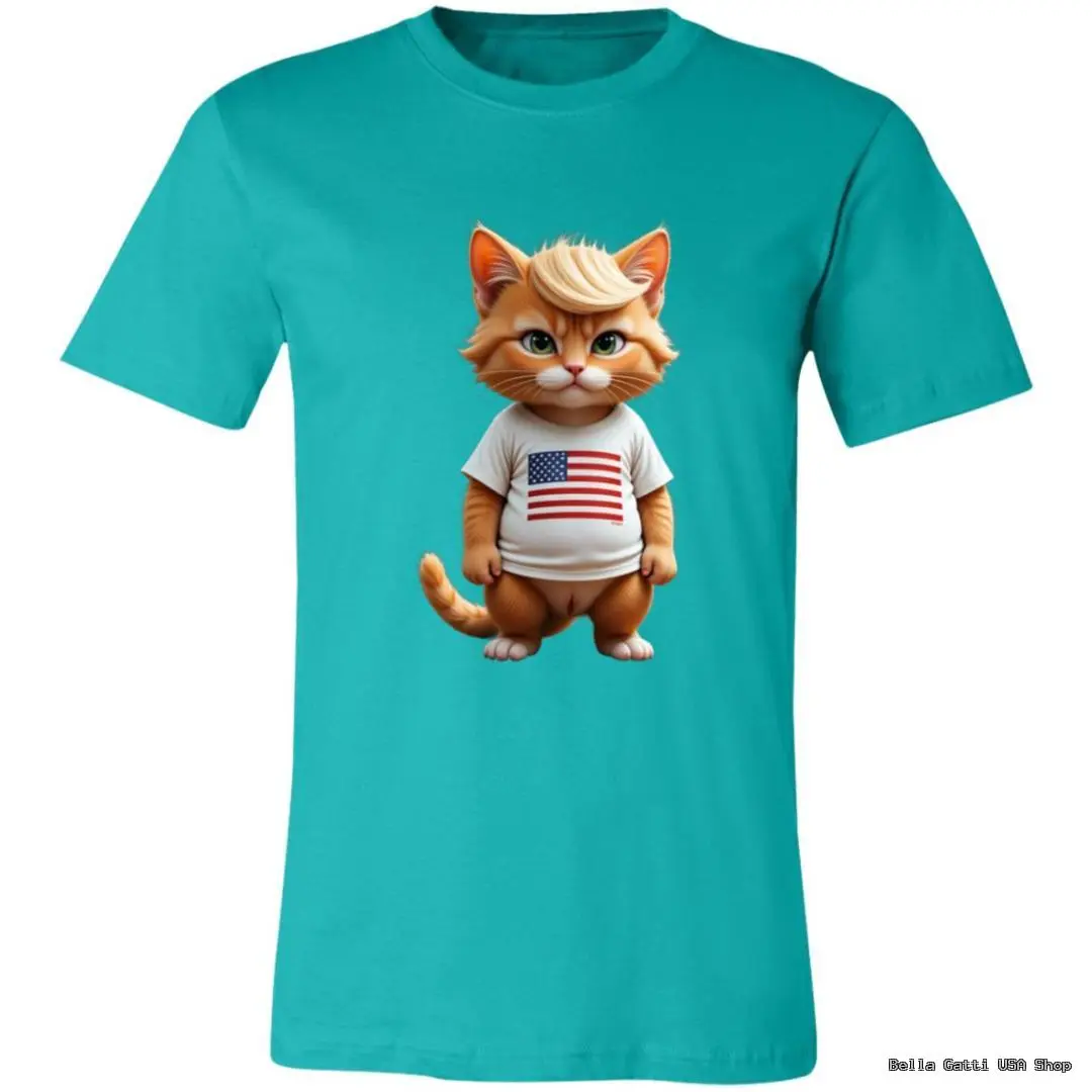 This playful tee features a bright eyed ginger kitten standing proudly in a tiny stars-and-stripes shirt. The soft, full color print captures every whisker and the kitty’s windswept tuft of hair for a look that’s equal parts adorable and bold. Whether you’re celebrating a patriotic holiday or just want a dose of feline charm, this shirt is an instant conversation starter.