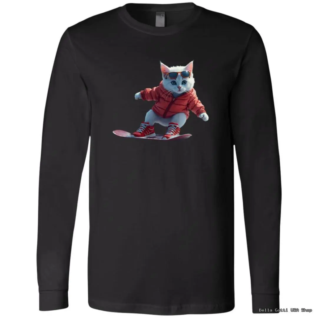 Meet your new cold-weather favorite. This unisex long sleeve tee features an eye-catching graphic of a cool cat in sunglasses carving a snowboard—equal parts playful and stylish. Soft, midweight fabric makes it perfect for standalone wear or layering under hoodies and jackets.