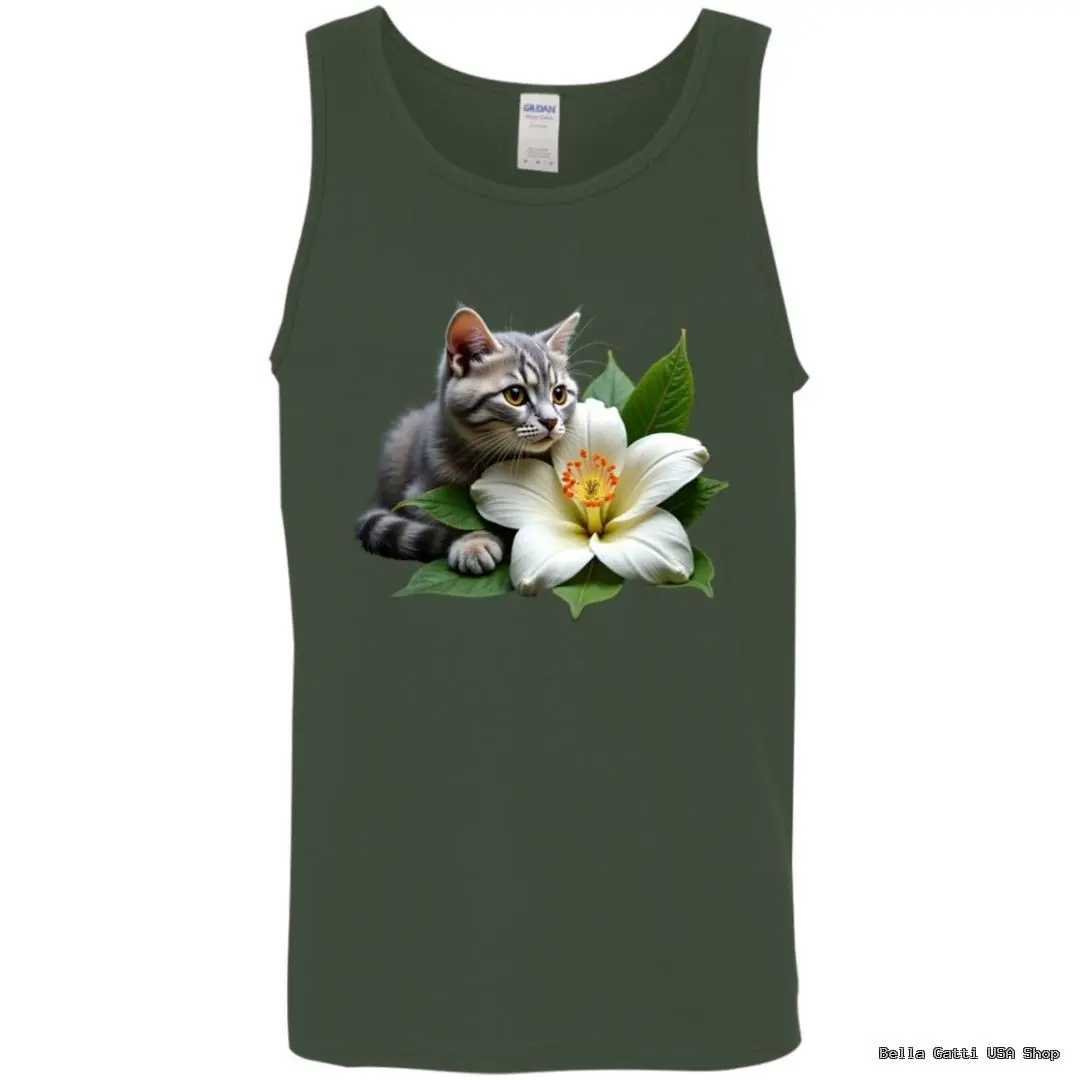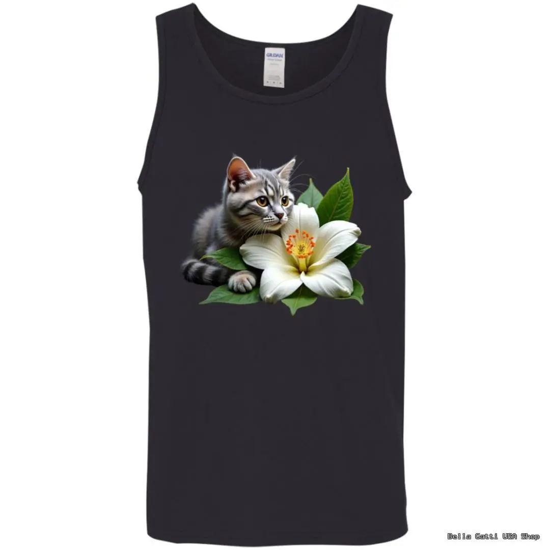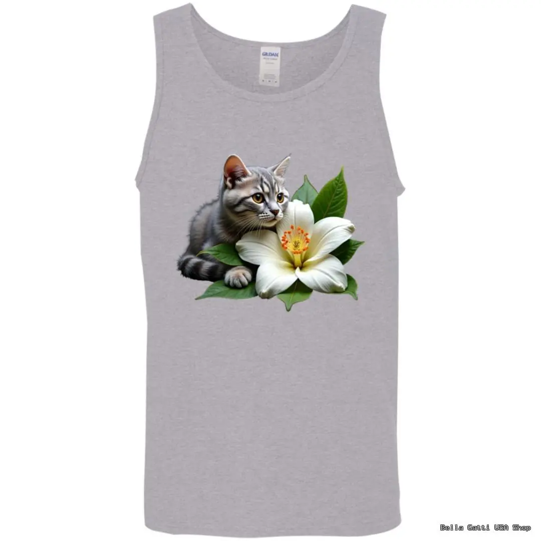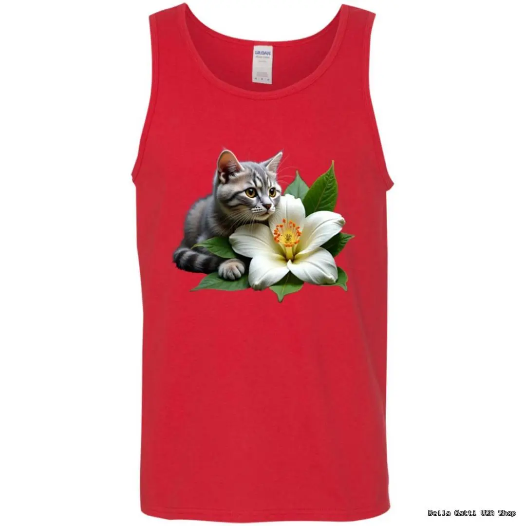 Show your love for cats in this ultra-soft unisex tank top featuring a realistic tabby with a white blossom. DIGISOFT printing delivers vivid, durable color that won’t crack. Available in sizes S–2XL and a range of classic colors for effortless summer style.