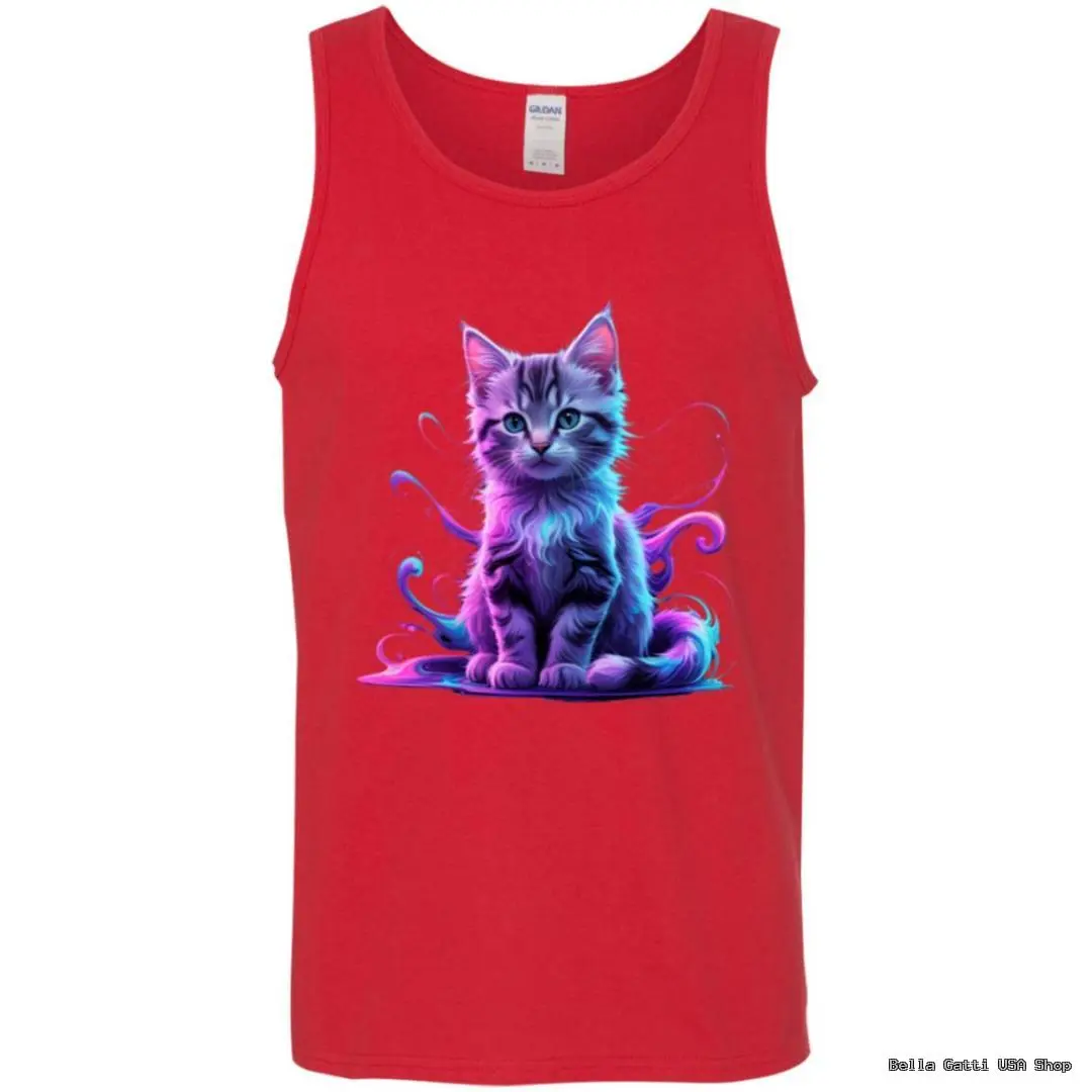 Neon Cat Graphic Tank Top – Vibrant Kitty Art, DIGISOFT Printing, Unisex Sizes S–2XL